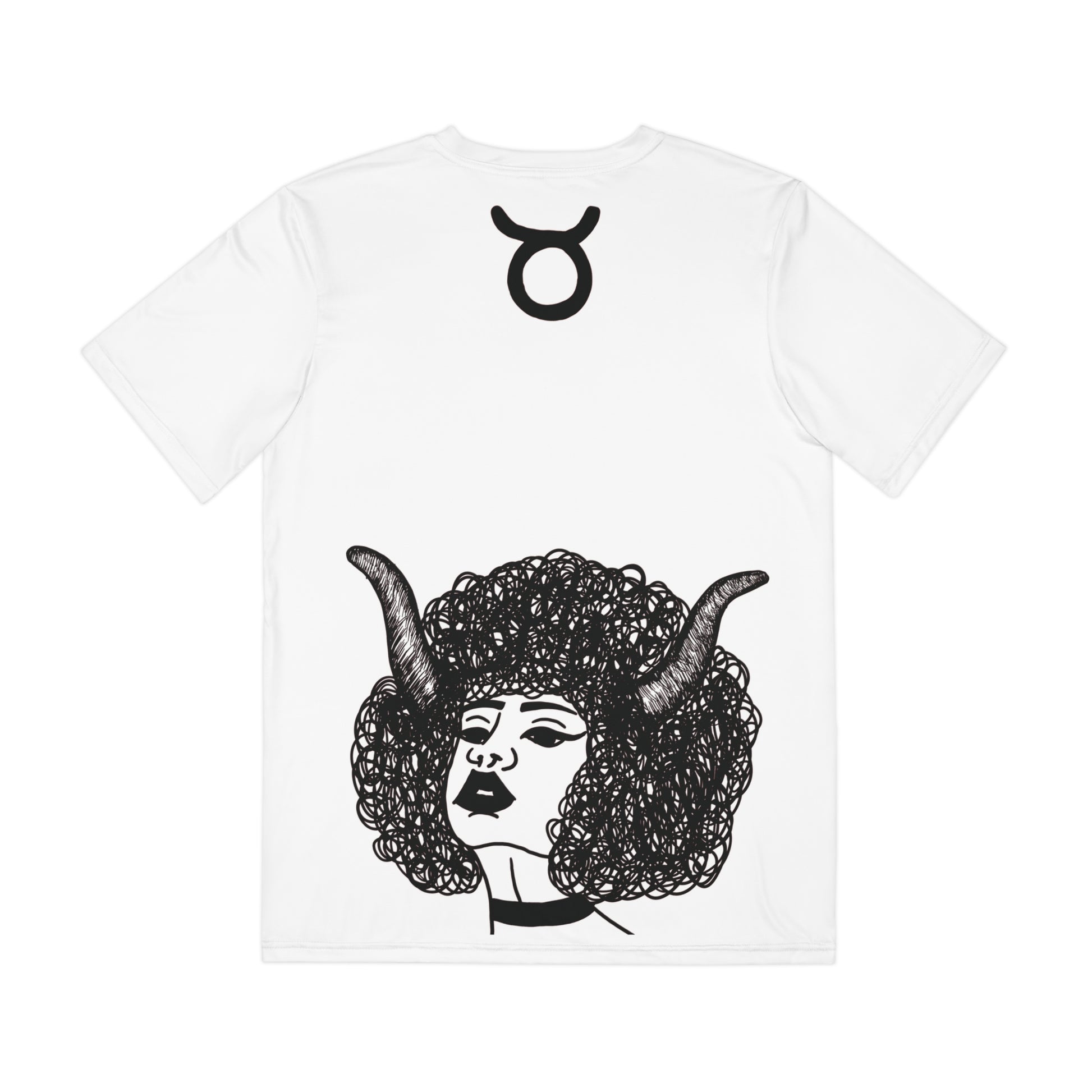 A stylish white Taurus T-Shirt made of 100% brushed polyester, giving off a chic and trendy vibe. Perfect for astrology enthusiasts and those looking to showcase their zodiac sign. Ideal for everyday wear or as a thoughtful gift for birthdays or astrology-themed occasions.