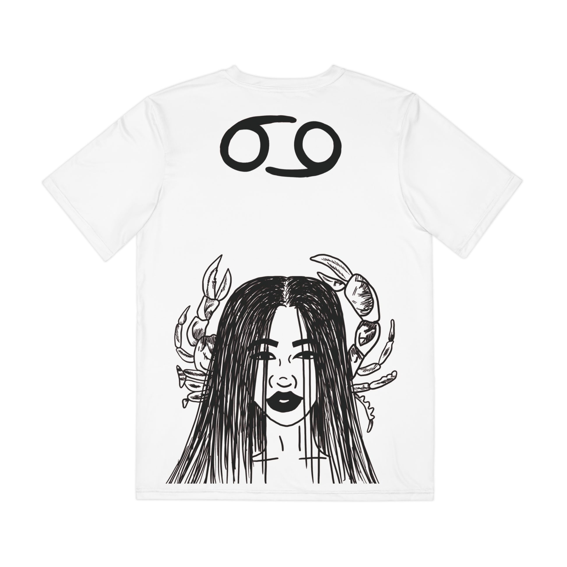 This white Cancer t-shirt is made of 100% brushed polyester, giving it a light and comfortable feel. Perfect for astrology enthusiasts who want to show off their zodiac sign in style. Great for casual wear or as a unique gift for birthdays or special occasions.